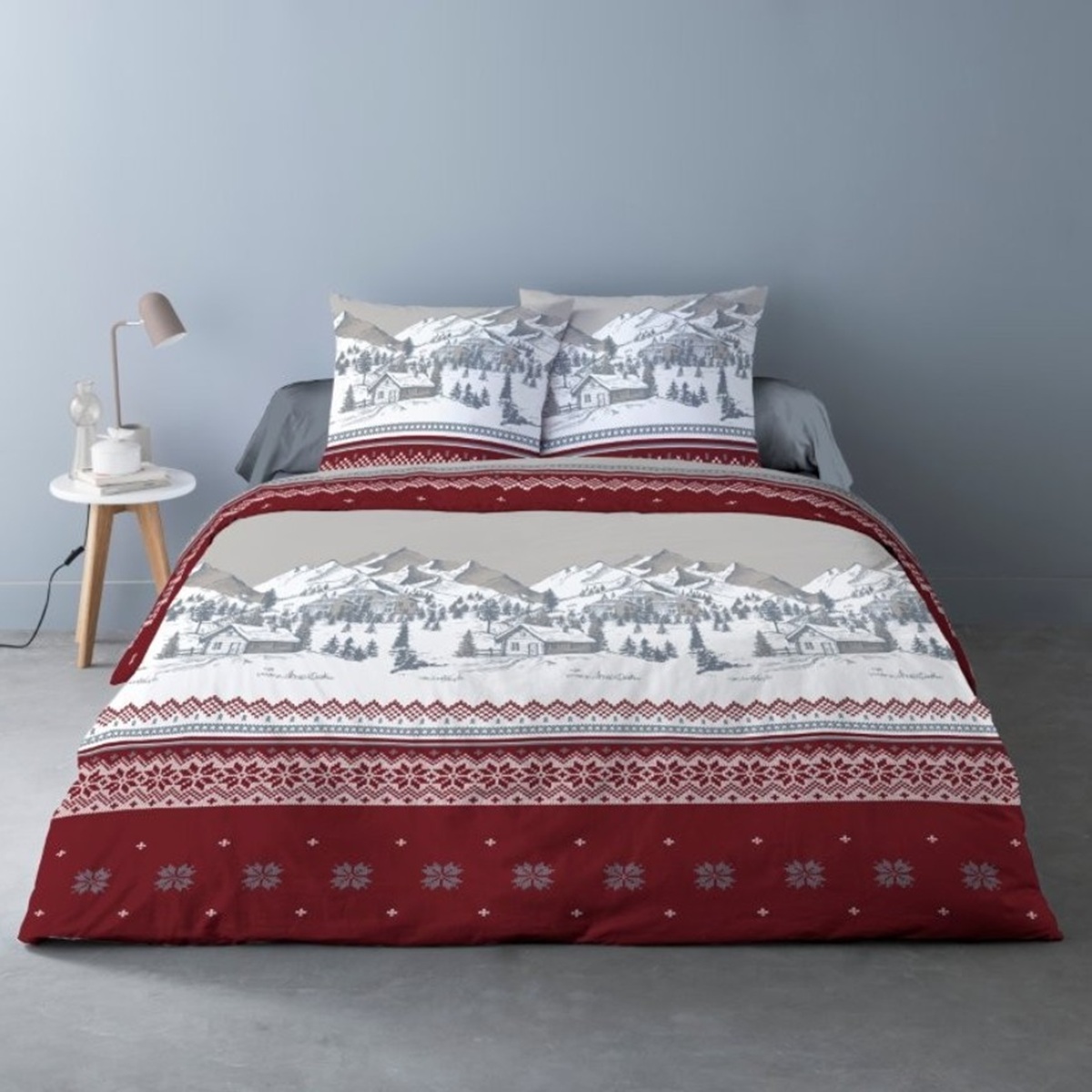 Chez Alpes Blanc, les housses de couette en flanelle s’inspirent de l’univers montagnard : paysages enneigés, motifs traditionnels, cerfs majestueux et couleurs chaleureuses. Un linge de lit pensé pour conjuguer confort thermique, esthétisme et authenticité.