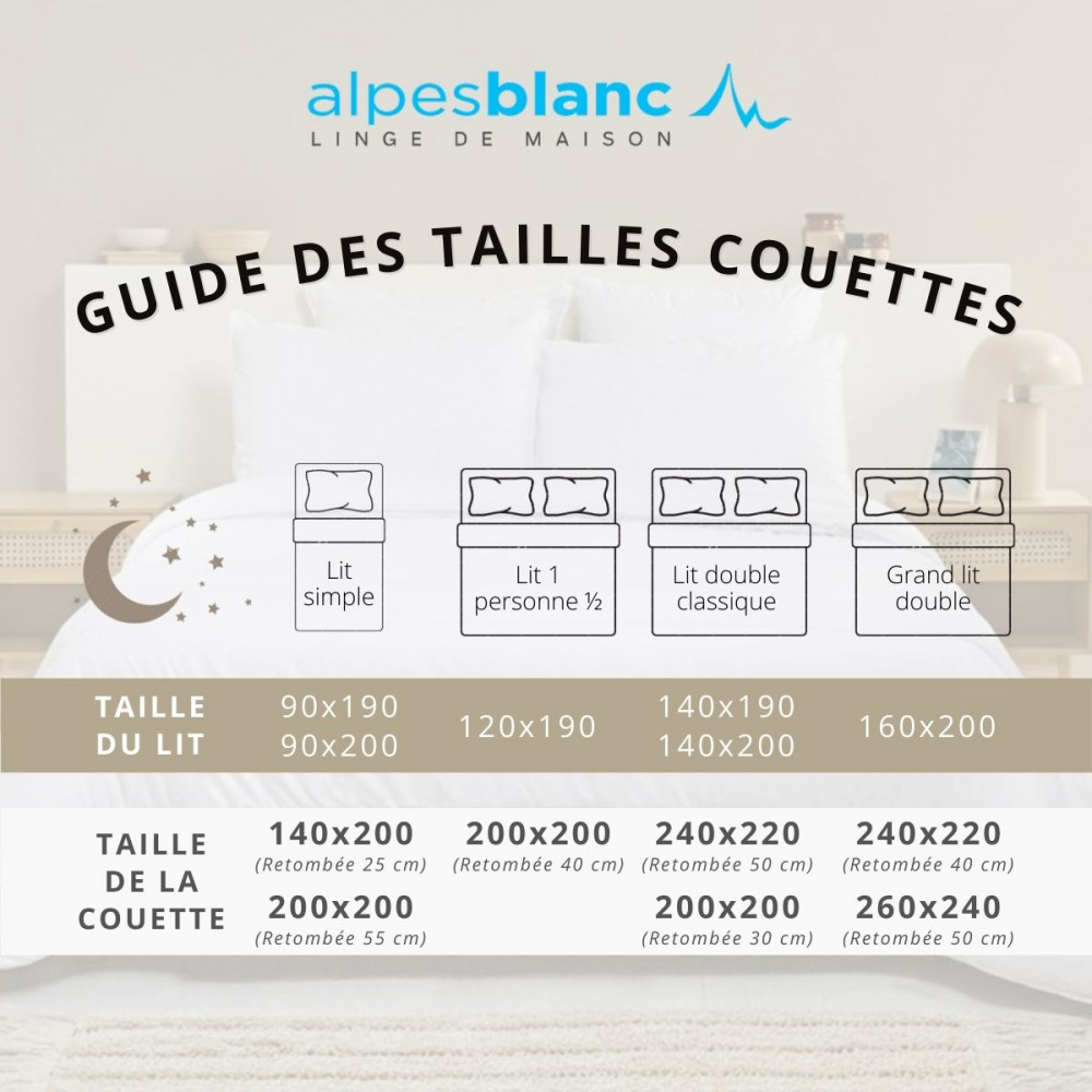 - 140x200 cm : pour lit une personne (90x190 cm).