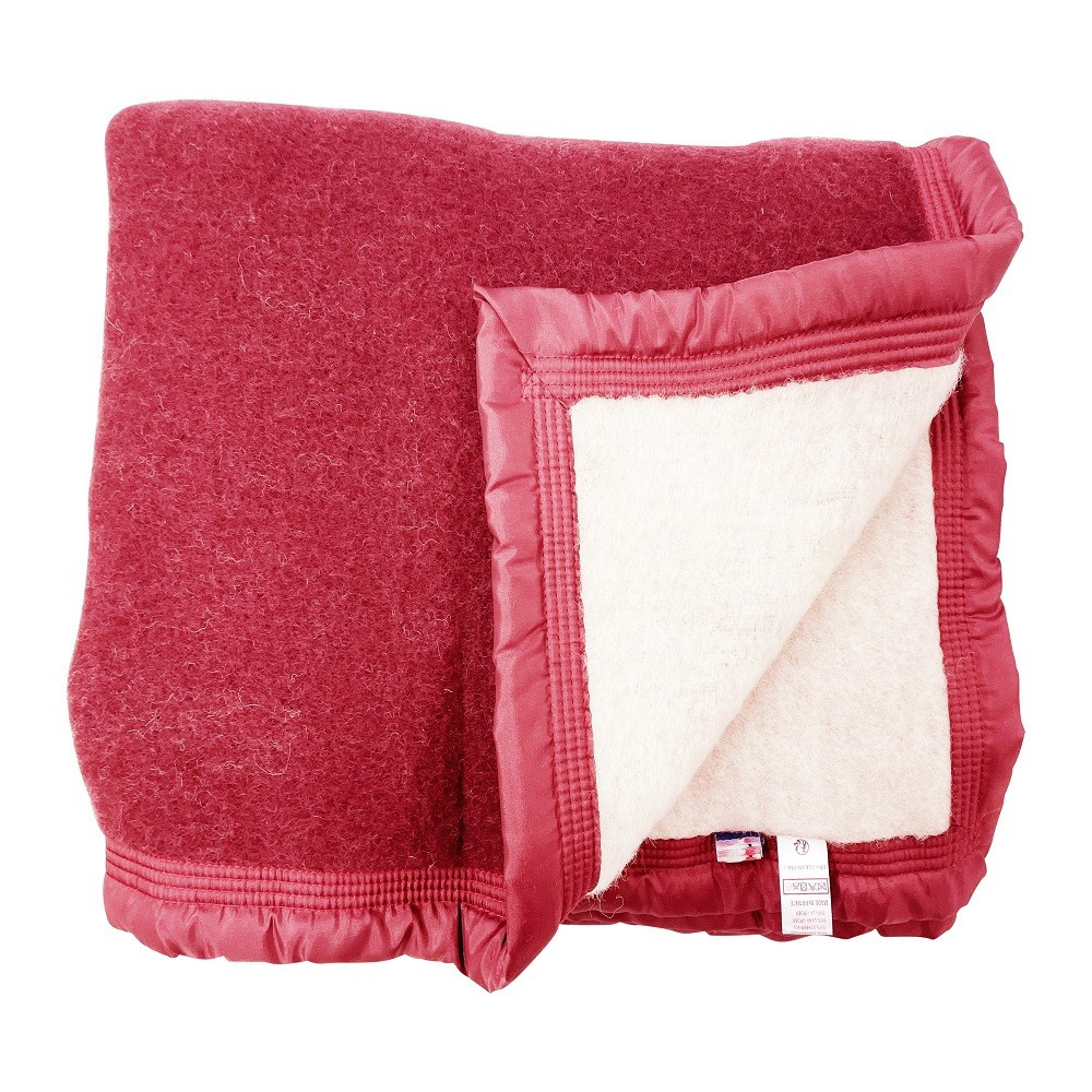 Couverture 100% Pure Laine Naturelle – Chaude, Douce et Respirante - Idéale pour l’Hiver, Fabrication Française - 220x240 cm - Fuchsia / écru