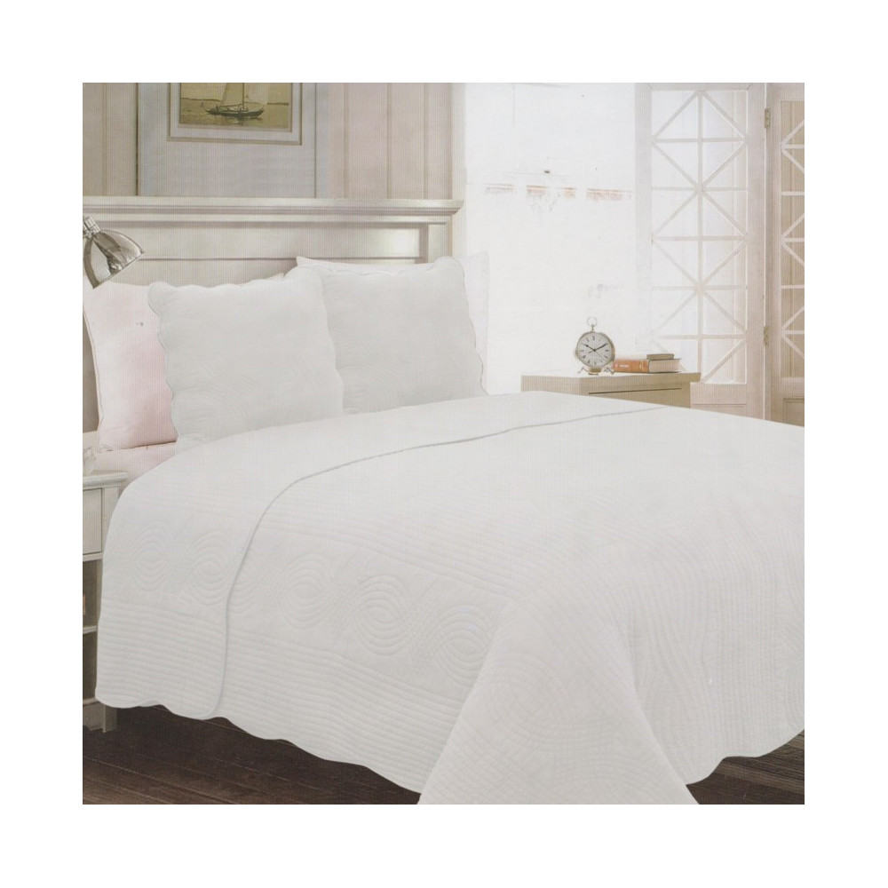 Couvre lit blanc 1 personne 180x240 cm + 1 taie 100% coton - Boutis lit simple ou Jeté de canapé