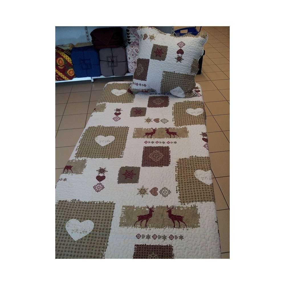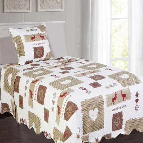 Boutis montagne Mégève 180x240 cm + taie 65x65 - Couvre lit ambiance chalet, déco cosy et qualité supérieure