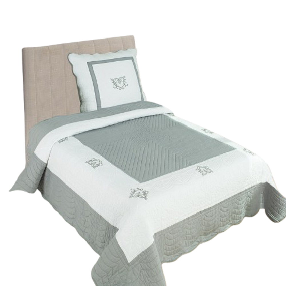Couvre lit boutis Peaceland 100% coton + taie(s) carrée(s) assortie(s) – Brodé, léger et doux – Bicolore - 180x240 cm - Peaceland Gris