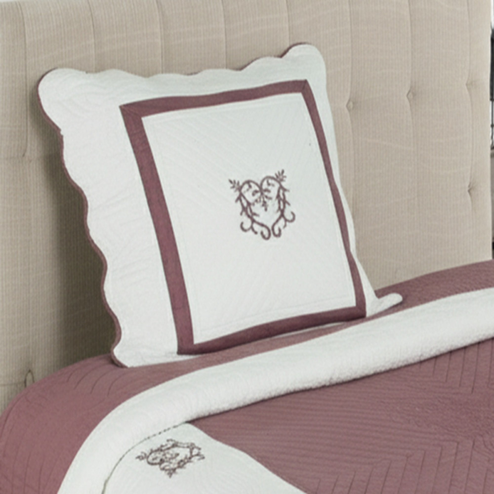 Couvre lit boutis Peaceland 100% coton + taie(s) carrée(s) assortie(s) – Brodé, léger et doux – Bicolore - 260x280 cm - Peaceland Aubergine
