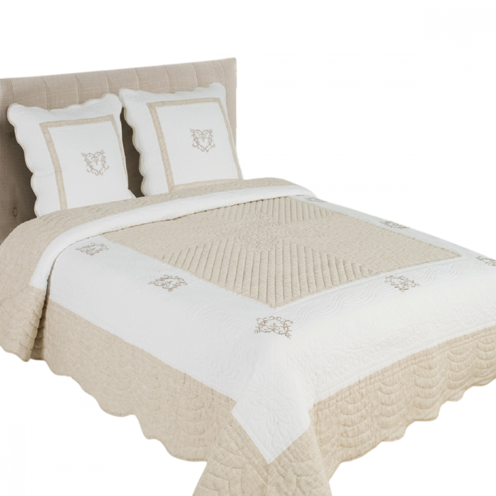 Retrouvez le couvre lit boutis Peaceland Lin spécial lit grande dimension. Avec une envergure de 260x260 cm, le Peaceland va être l'allié incontournable pour ajouter du charme à votre chambre.