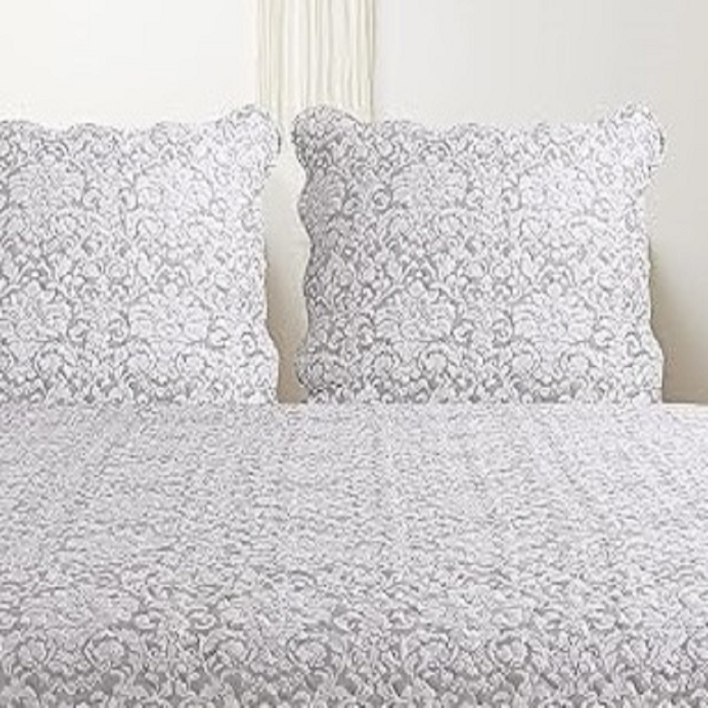 Découvrez le Boutis Délicat gris pour lit deux places, disponible avec 2 taies 65x65 cm.