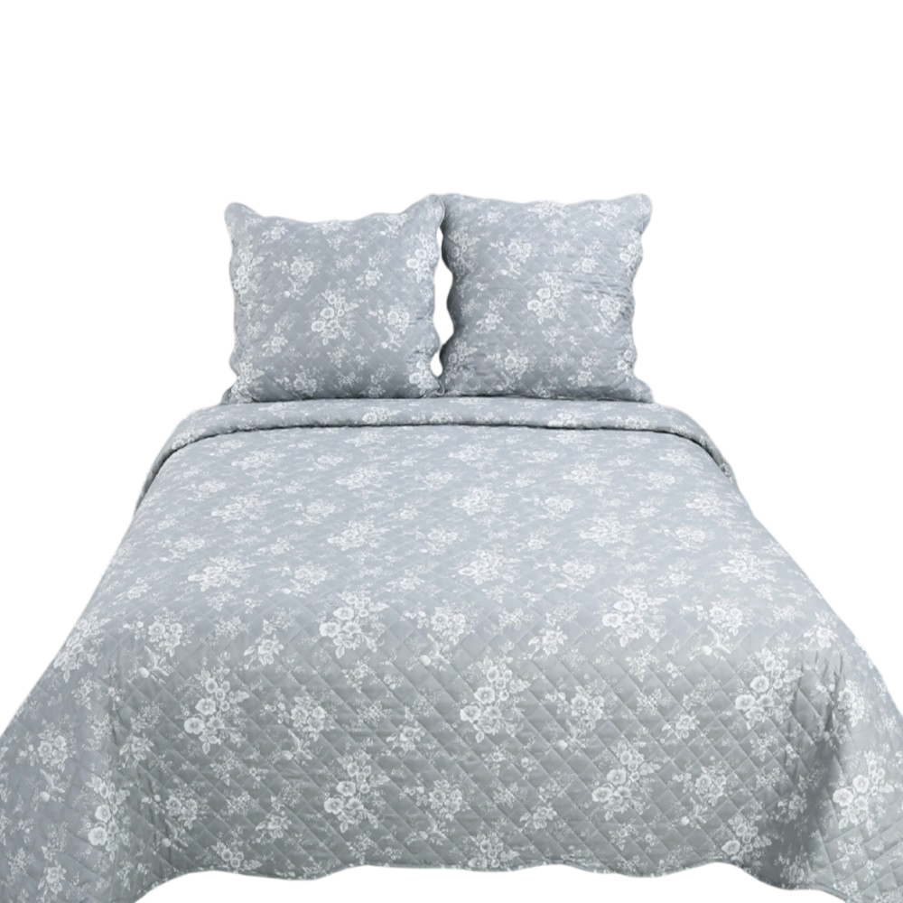 Couvre-lit gris floral 220x240cm + 2 taies 65x65cm