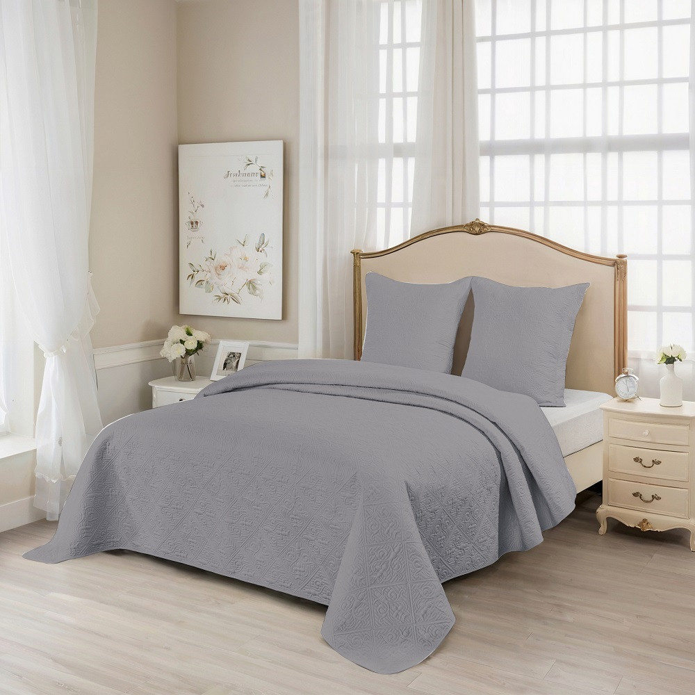 Couvre-Lit Matelassé Uni Gris - 2 Personnes (230x250 cm)
