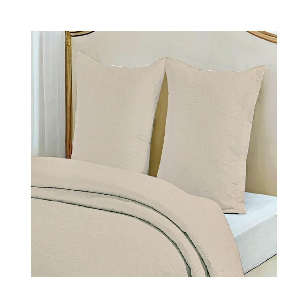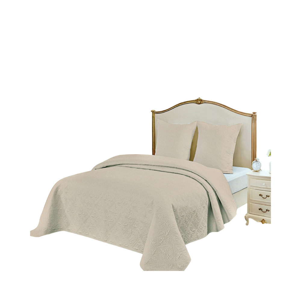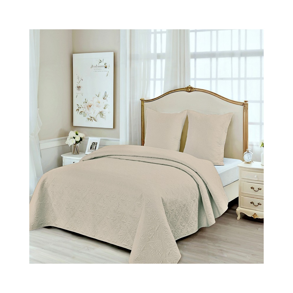 Couvre lit matelassé couleur unie Lin avec taies - Enveloppe 100 % percale de coton, boutis pour lit simple ou double - 230x250 cm