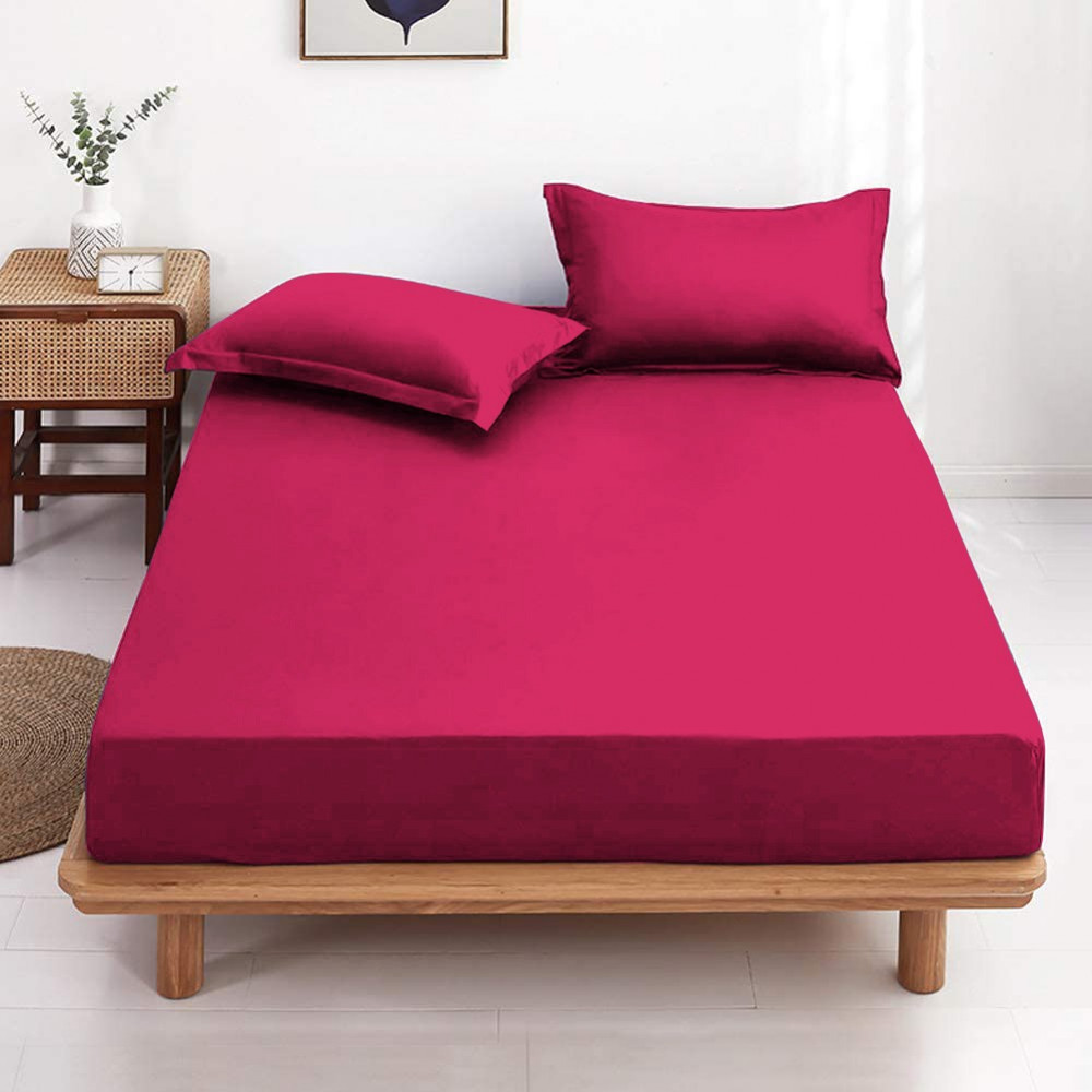 Drap housse fuchsia 120x190 cm installé sur un lit