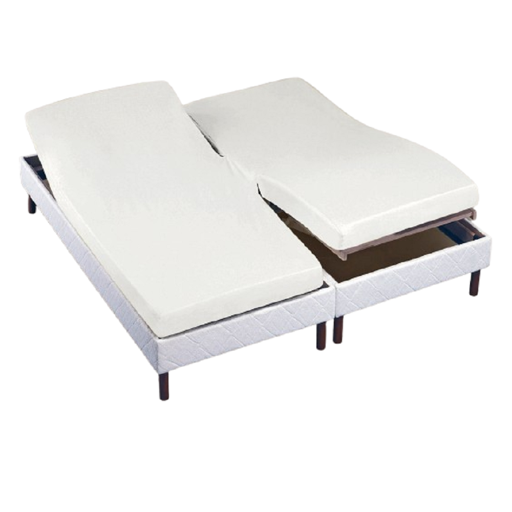 Drap housse chausson blanc 2x80x200 cm pour lit tête et pieds relevables - Fabrication française, 100 % coton, bonnet 30 cm
