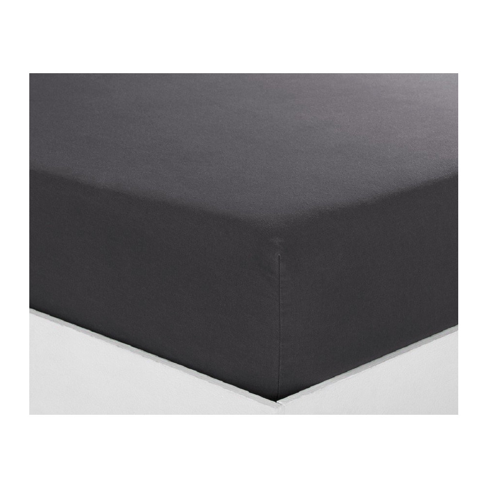 Drap Housse percale 78 fils/m² bonnet 30 cm - Gris Anthracite / Dark grey - 80x200 cm