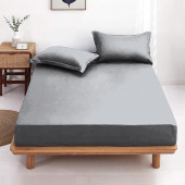 Drap housse uni 100% coton 57 fils/cm² - Fabrication française – Grand bonnet 30 cm – Doux et durable – Couleur grand teint - Gris souris - 90x190 cm