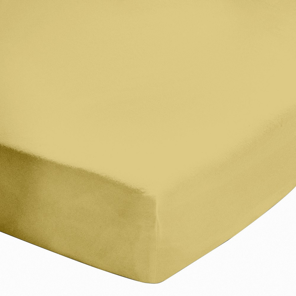 Drap housse uni 100% coton 57 fils/cm² - Fabrication française – Grand bonnet 30 cm – Doux et durable – Couleur grand teint - Jaune - 140x190 cm