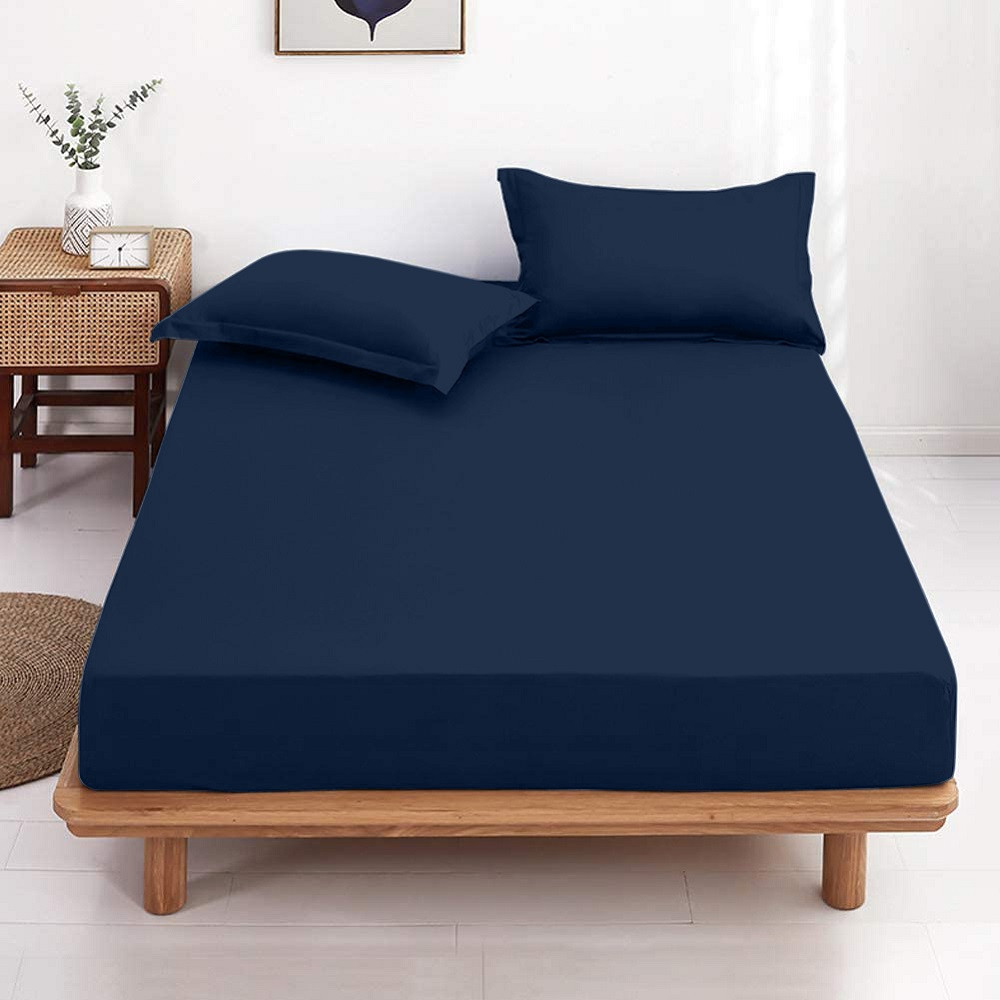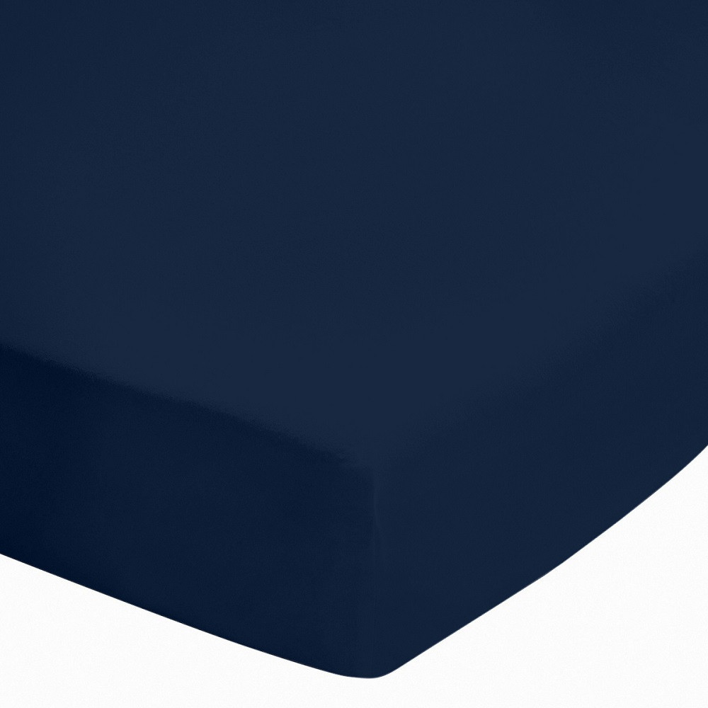Drap housse uni 100% coton 57 fils/cm² - Fabrication française – Grand bonnet 30 cm – Doux et durable – Couleur grand teint - Marine - 200x200 cm