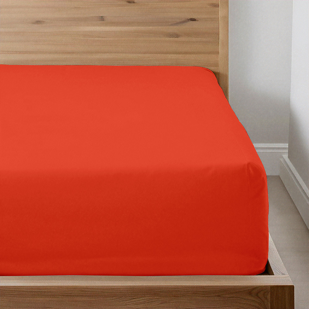 Drap housse 100% Percale de coton 80 fils/cm² - Grand bonnet 30 cm – Fabrication Européenne – Doux, résistant – Oeko-Tex® - Terracotta - 120x190 cm
