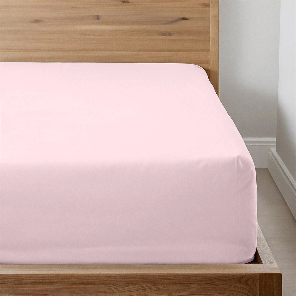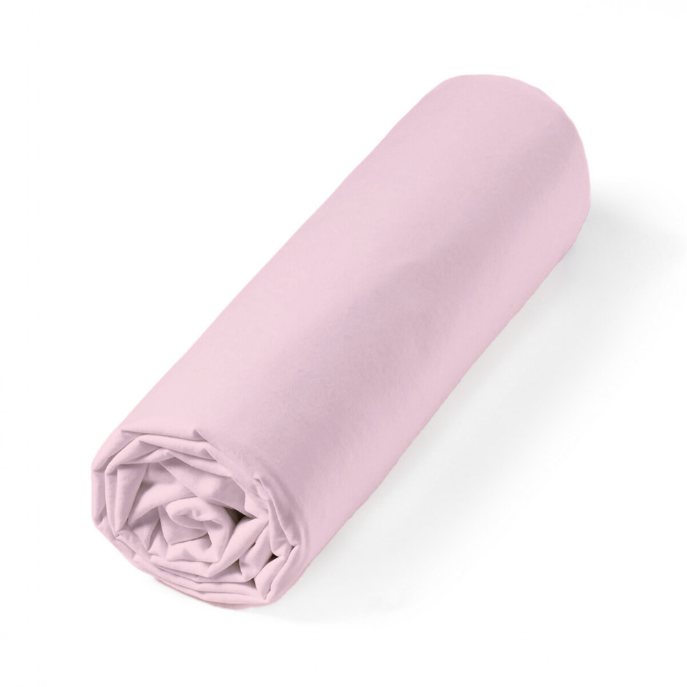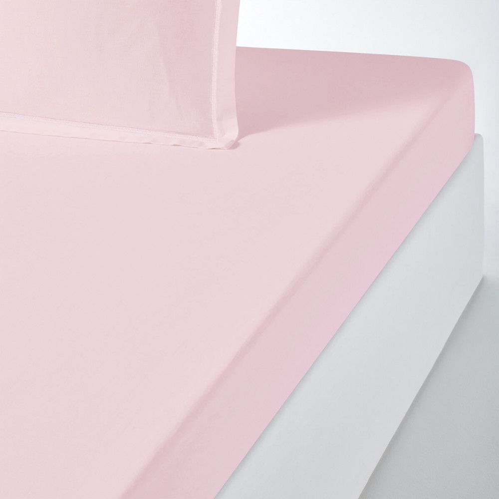 Drap housse 100% Percale de coton 80 fils/cm² - Grand bonnet 30 cm – Fabrication Européenne – Doux, résistant – Oeko-Tex® - Rose poudré / Light pink - 90x190 cm