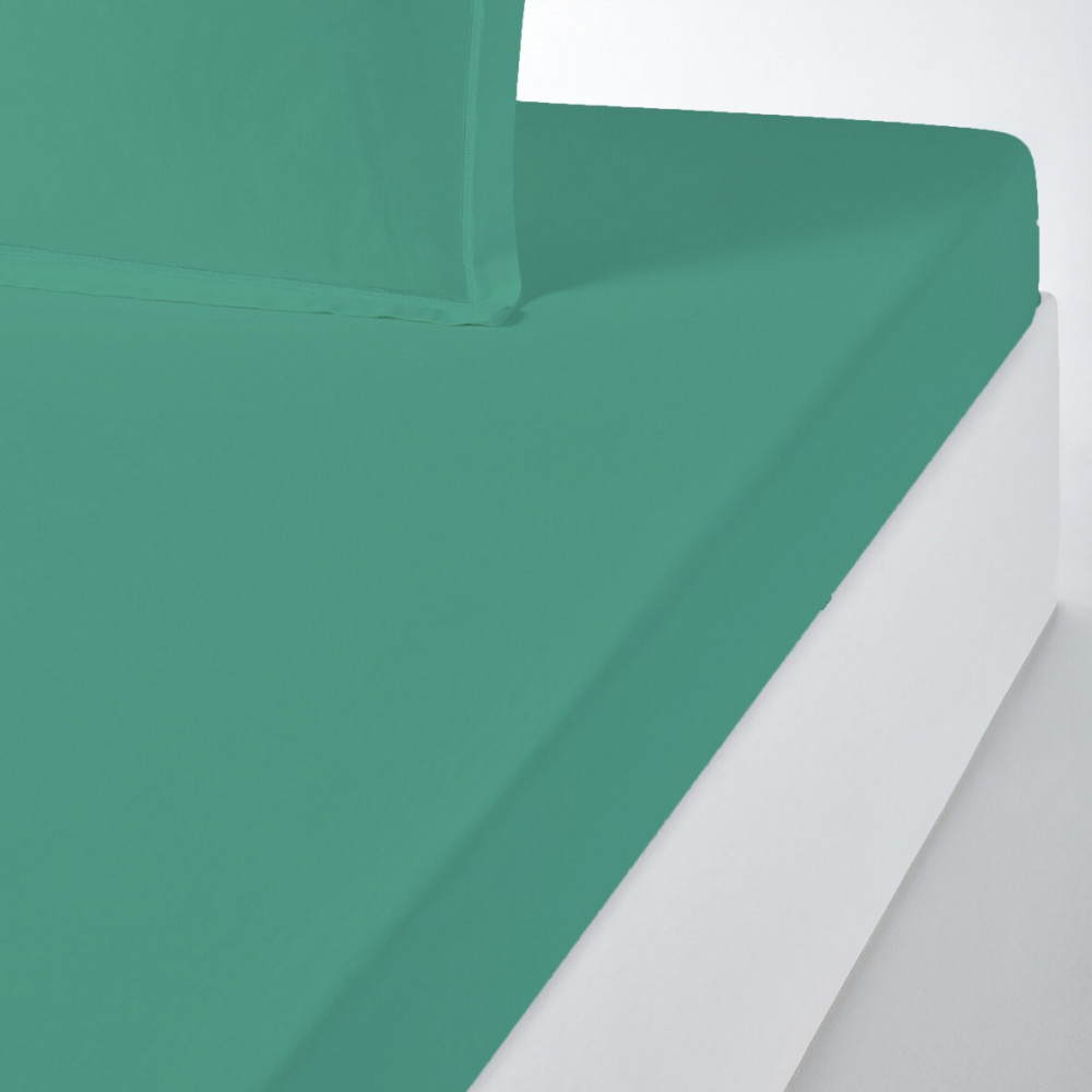 Drap housse 100% Percale de coton 80 fils/cm² - Grand bonnet 30 cm – Fabrication Européenne – Doux, résistant – Oeko-Tex® - celadon - 160x200 cm