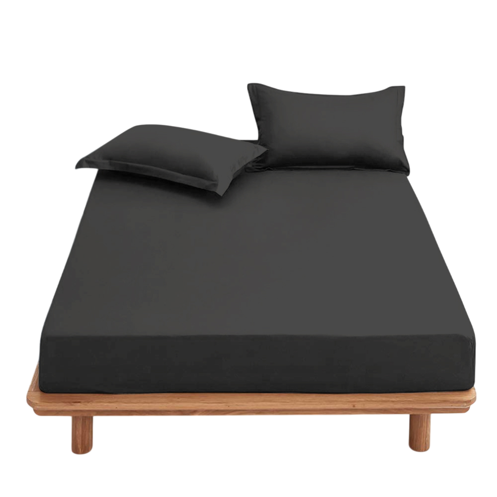 Drap housse medium grey 100% coton 57 fils visuel d'ambiance sur fond blanc