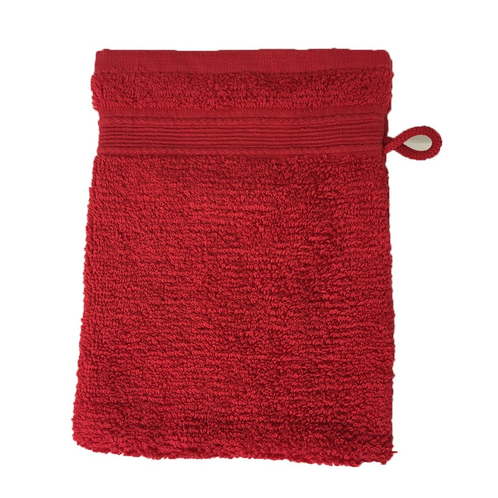 Lot de 10 gants de toilette 100 % coton éponge 600g/m² 20x15 cm - Absorbants, nettoient en douceur, pour un usage quotidien - Rouge/Red