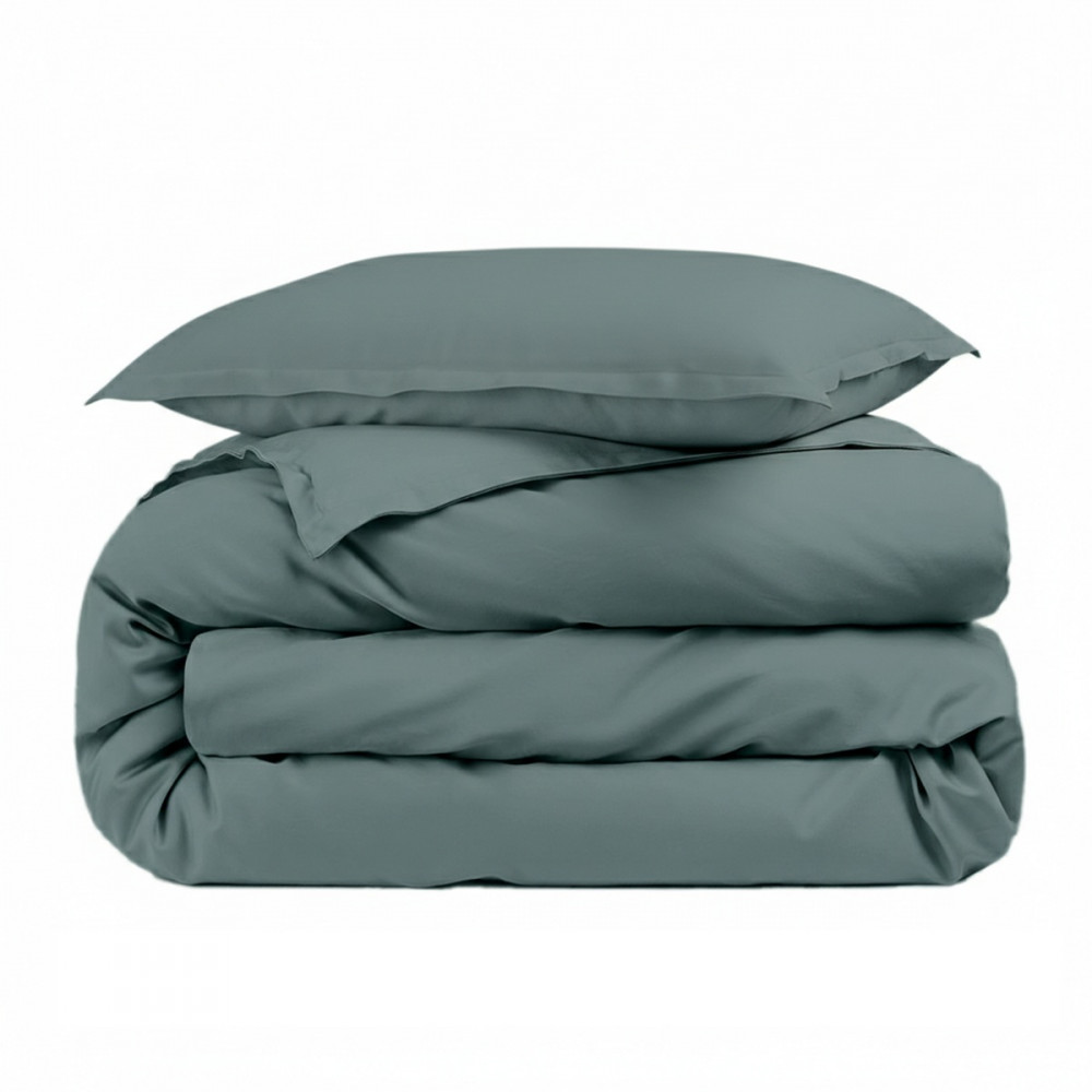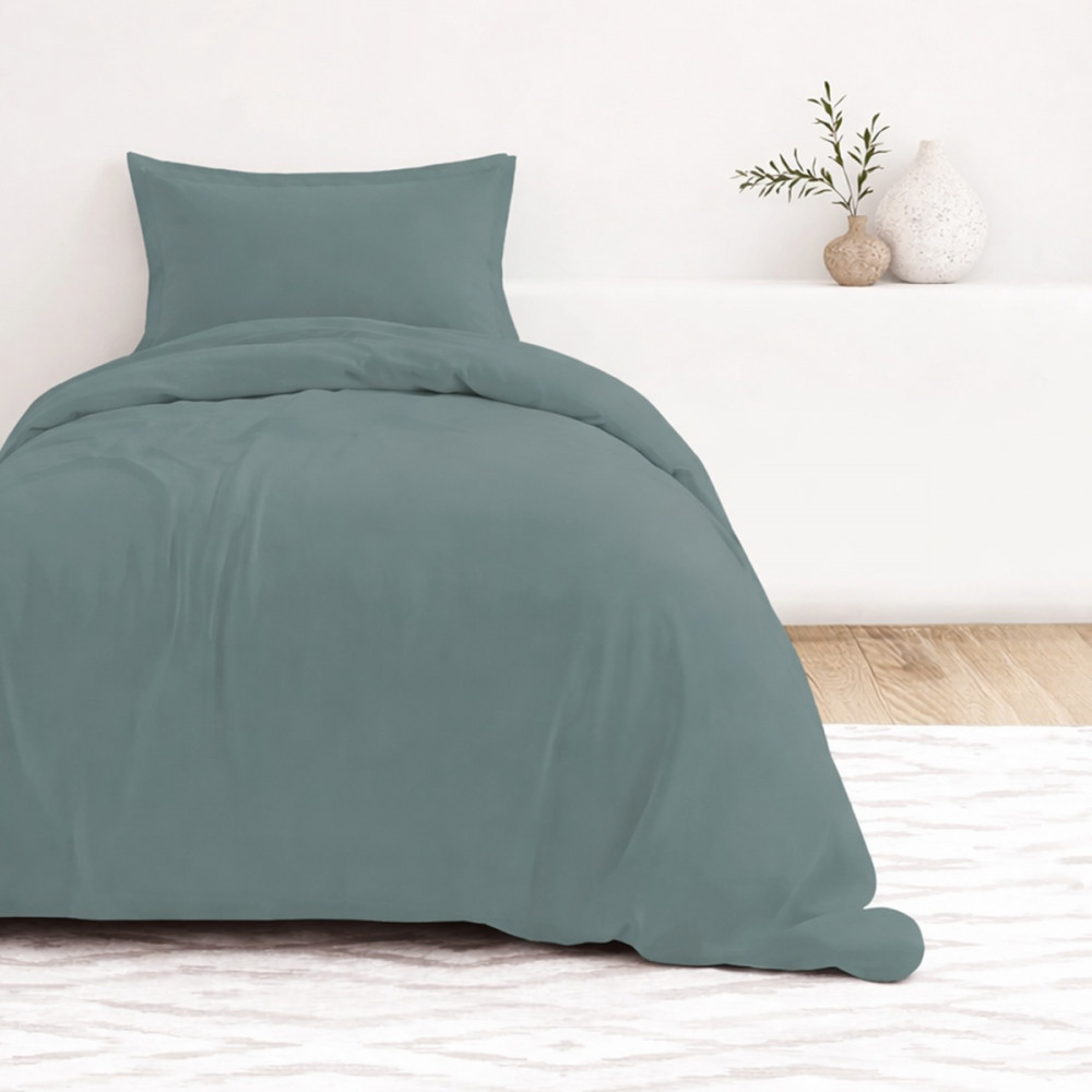 Housse de couette unie 100% percale de coton 80 fils + Taie(s) 65x65 cm – Fabriquée en Europe – Doux et respirant - Oeko-Tex® - 140x200 cm - Anthracite