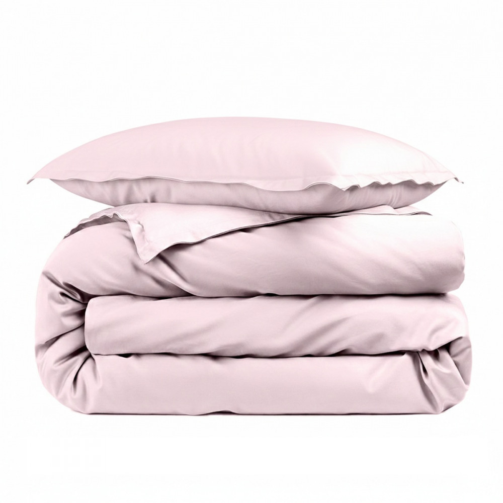 Housse de couette unie 100% percale de coton 80 fils + Taie(s) 65x65 cm – Fabriquée en Europe – Doux et respirant - Oeko-Tex® - 140x200 cm - Rose poudré / Light pink