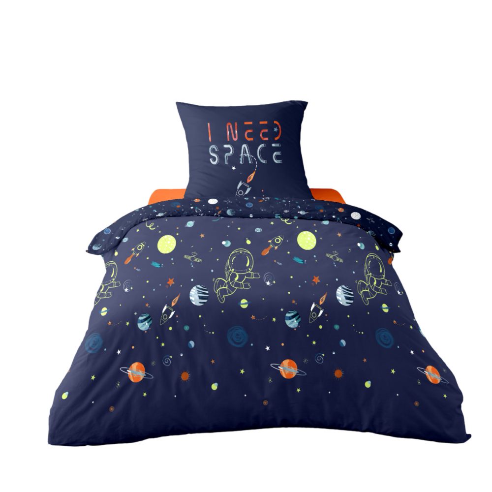 Housse de couette Space 140x200 cm + taie - 100 % coton 52 fils - Ambiance astronaute pour lit une place
