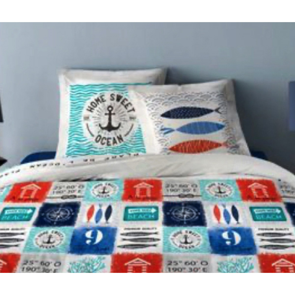 Optez pour une ambiance plage et chaleureuse avec la nouvelle housse de couette Océan Bleu de Alpes Blanc.