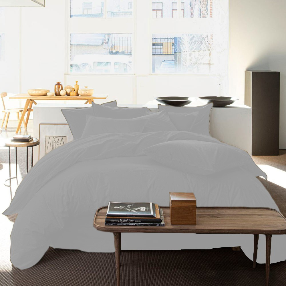 Housse de Couette + 2 taies carrées|100% Percale de Coton Lavé|80 fils/cm2 - 220x240 cm - gris clair