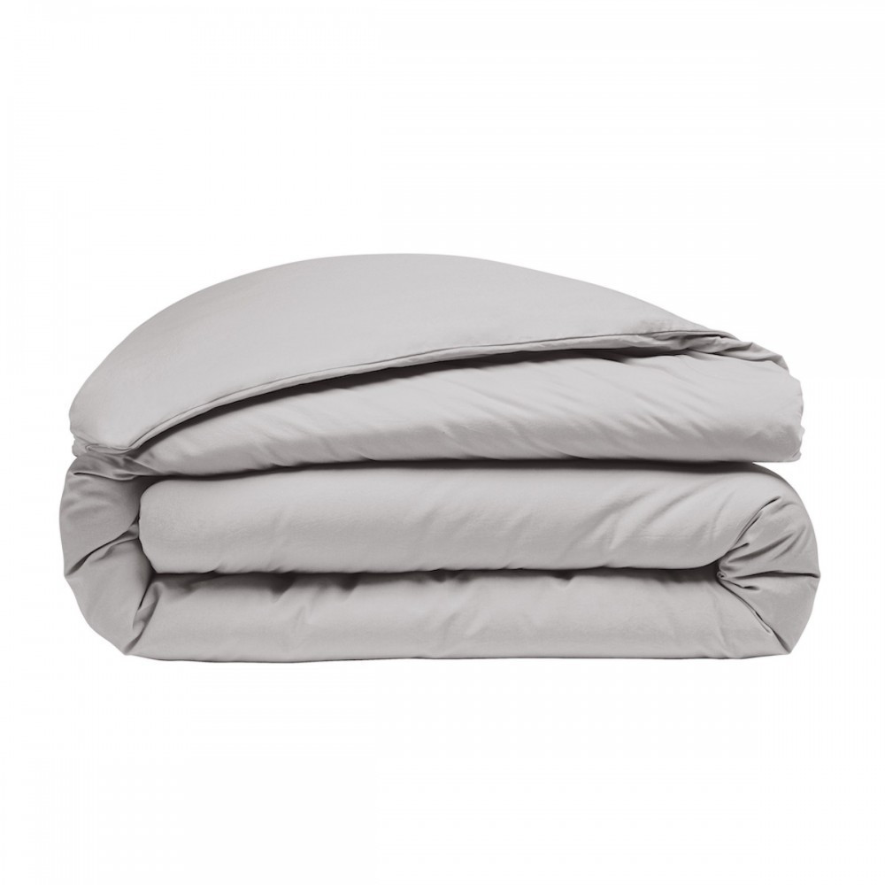 Housse de couette grise et blanche percale de coton 220x240 cm + 2 taies carrées