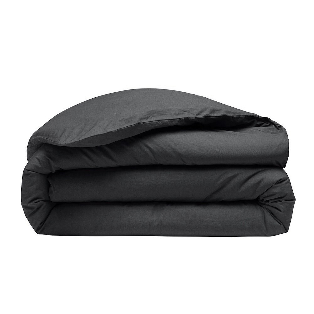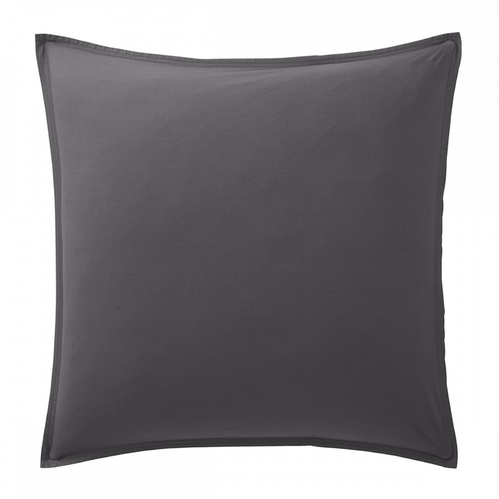 Housse de Couette + 2 taies carrées|100% Percale de Coton Lavé|80 fils/cm2 - 240x260 cm - Gris Foncé