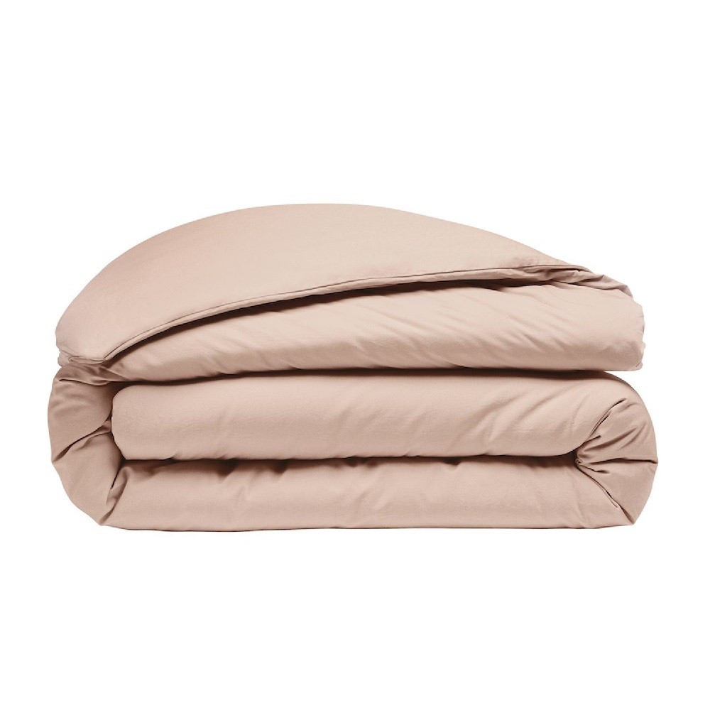 Housse de Couette + 2 taies carrées|100% Percale de Coton Lavé|80 fils/cm2 - 220x240 cm - Rose poudré / Light pink