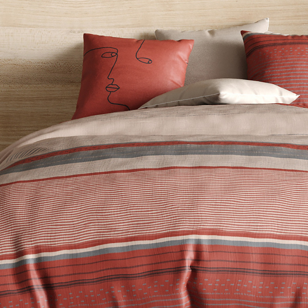 Housse de couette HANA 100% coton percale 71 fils + 2 taies - Rayures terracotta et sable - Style bohème chic - Oeko-Tex
