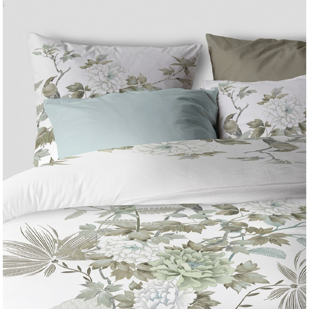 Housse de couette réversible Floral percale de coton 220x240 cm + 2 taies carrées