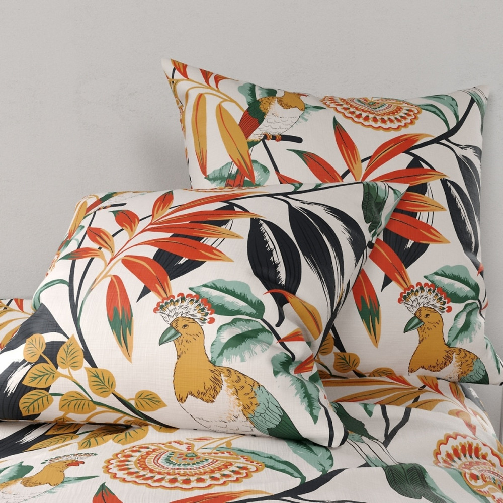 Housse de couette 2220x240 cm Ninon ambiance tropicale - Motifs oiseaux et fleurs colorés - 100% coton - 2 taies incluses