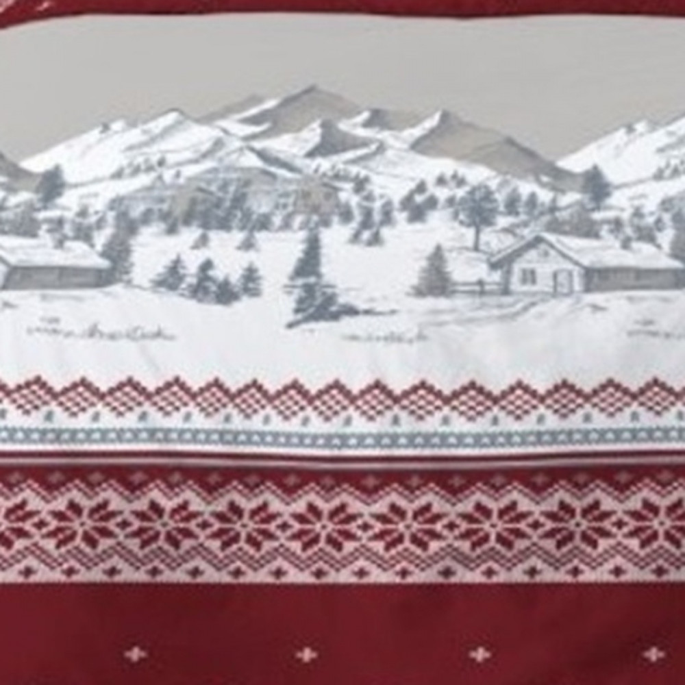 Housse de couette Navacerrada 220x240 cm 100 % flanelle de coton + 2 taies - Dessin chalet montagne rouge et gris