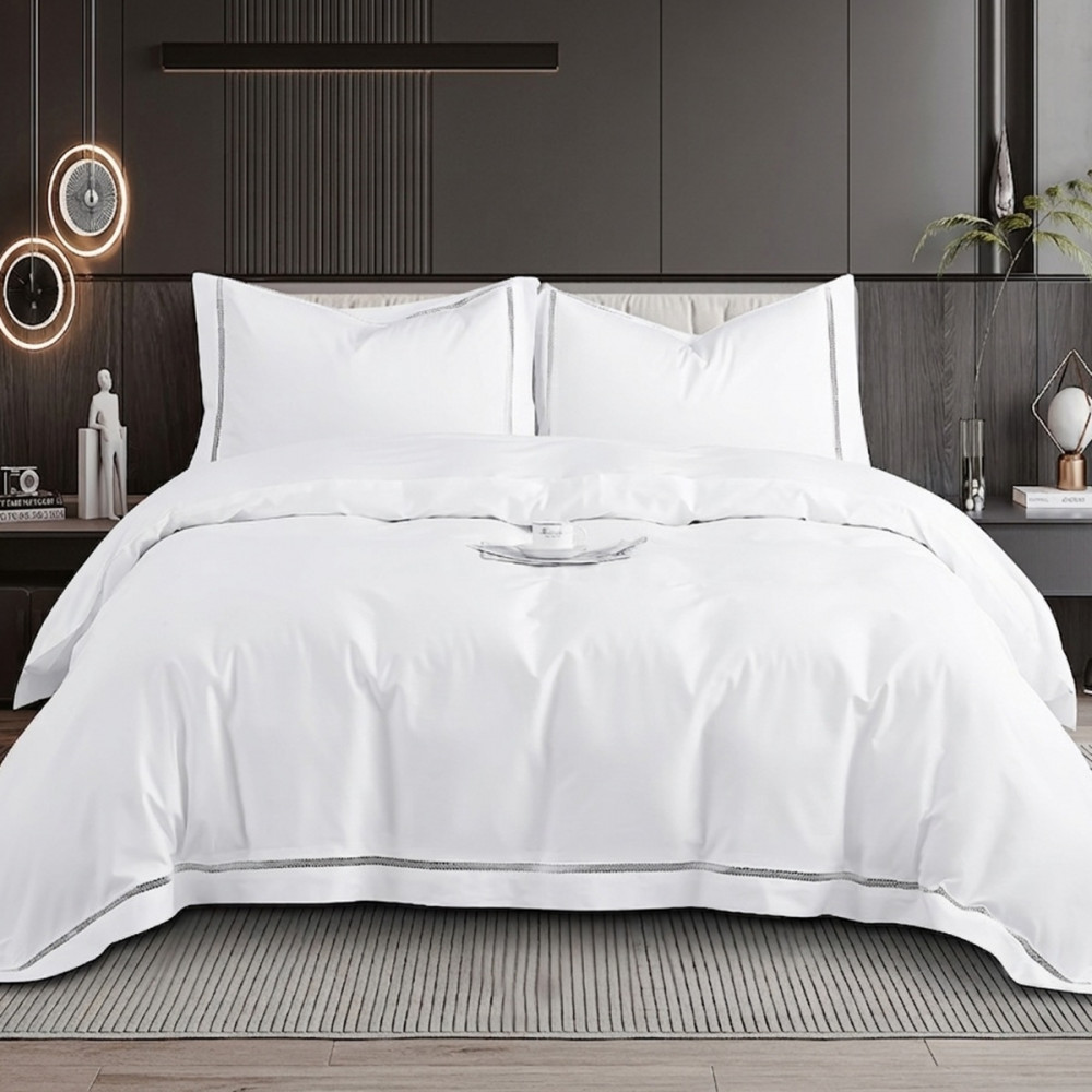 PARURE COMPLÈTE ET FINITION SOIGNÉE : vendue avec 2 taies 65x65 cm assorties. Finition avec broderie ajourée de 6 cm, pour une touche élégante et un rendu raffiné, pour un linge de lit haut de gamme.