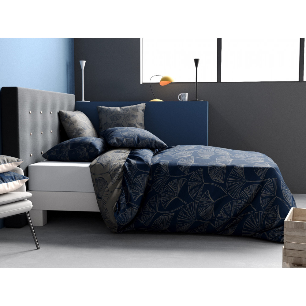 Housse de couette 240 x 260 cm - Ginko Réversible et ses deux taies 65x65 cm assorties