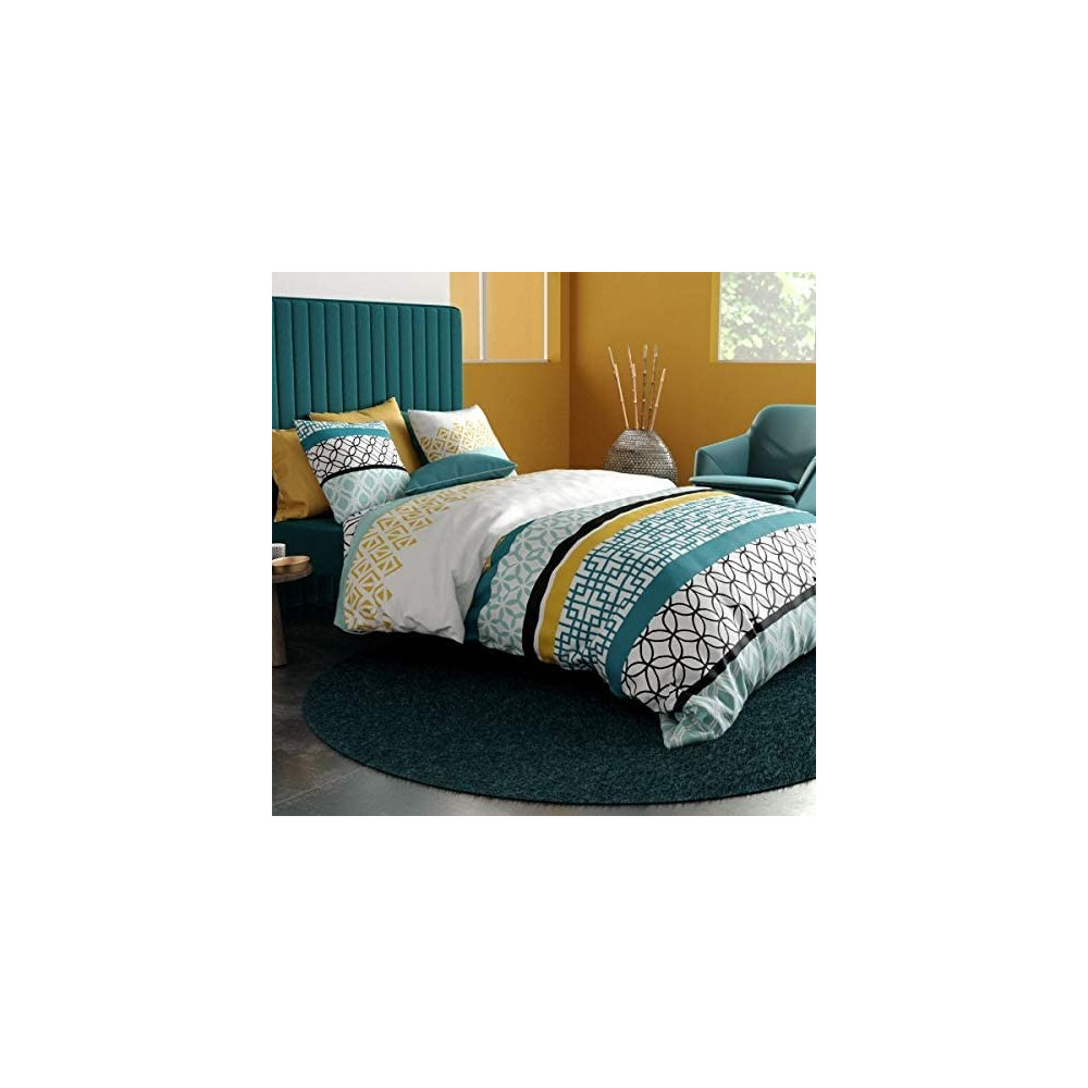 Craquez pour cette superbe housse de couette Citedor avec ses rayures turquoises, noires et dorées !