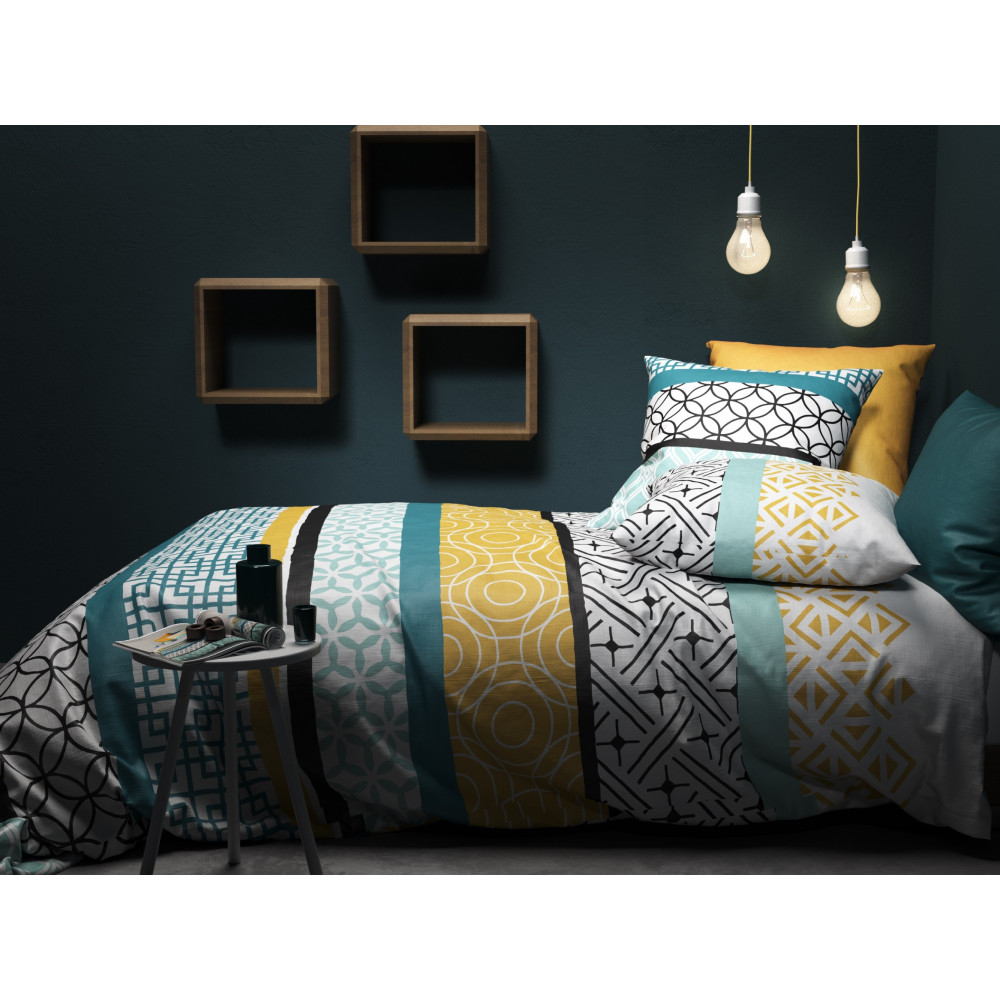 Ses couleurs tendances et ses motifs géométriques multicolores égaieront votre chambre à coucher.