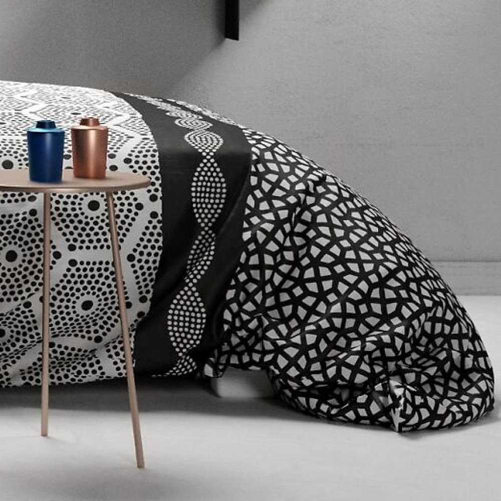 Housse de couette 260x240 Pavage 100% Coton 57 fils - Parure de lit motifs graphiques noirs et blancs avec taies 63x63 cm