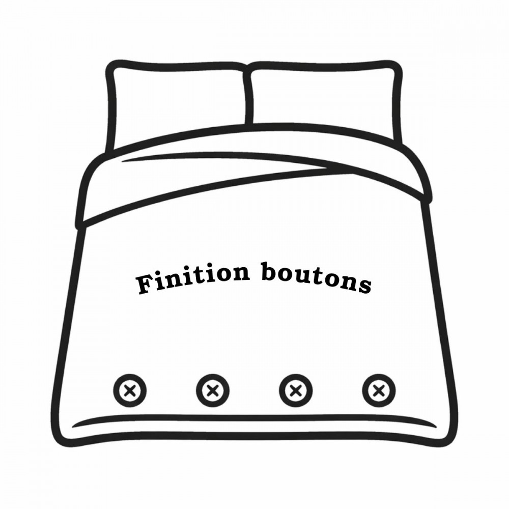 - FINITIONS ET ENTRETIEN : équipée d’une finition à boutons pour un maintien parfait de la couette. Lavable à 40°C, il est conseillé de la laver et repasser sur l'envers pour protéger les motifs.