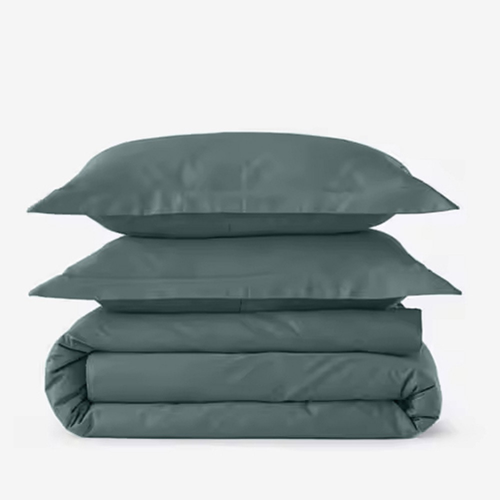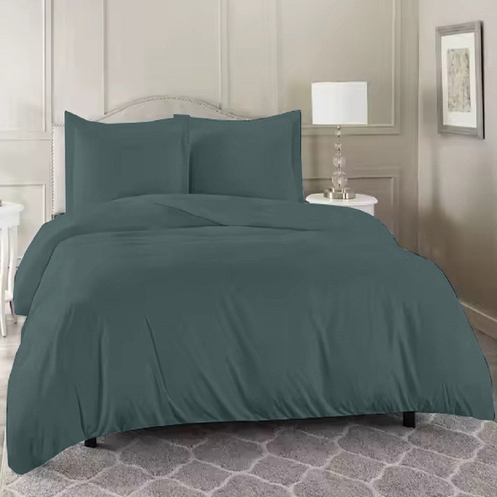 Housse de couette 240x280 cm 100 % percale 80 fils/cm² + 2 taies 50x70 cm - Finition bouteille, douce, respirante et durable - Anthracite