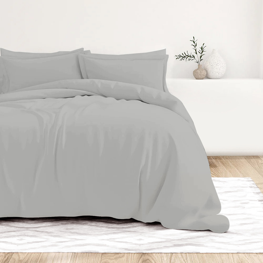 Housse de couette unie 100% percale de coton 80 fils + Taie(s) 65x65 cm – Fabriquée en Europe – Doux et respirant - Oeko-Tex® - 140x200 cm - gris clair