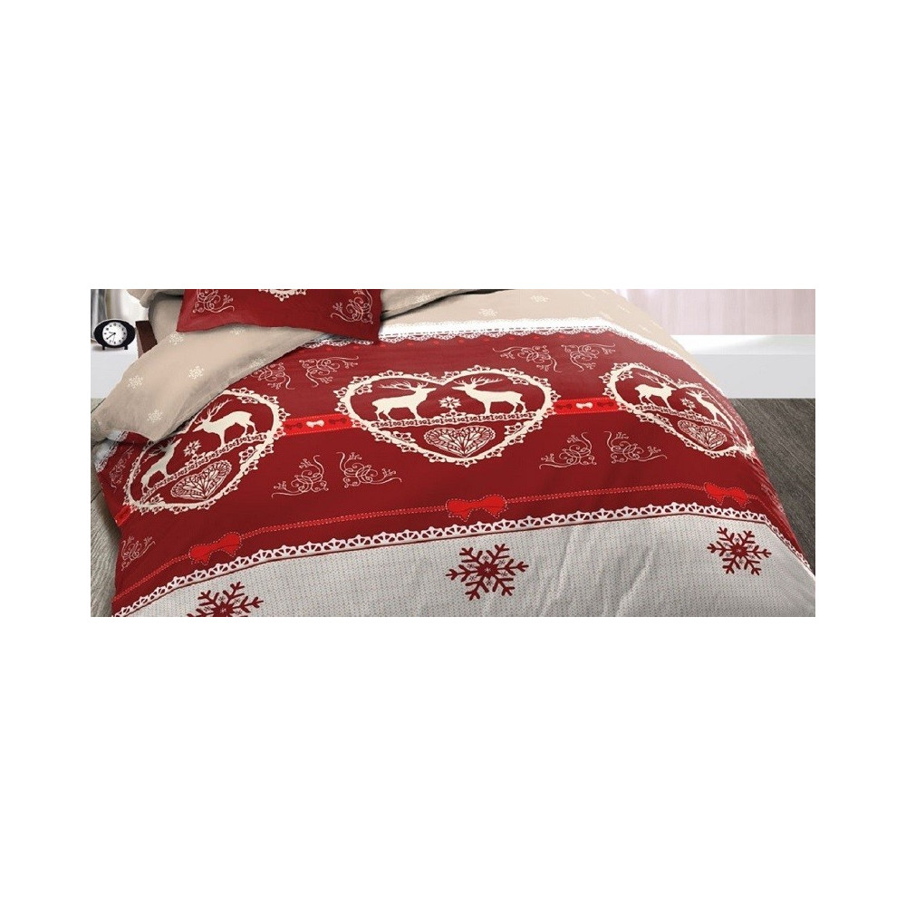 Housse de couette Chalet Winter Rouge 260x240cm + 2 taies 100 % coton - Inspiration montagnes savoyardes, finition rabat