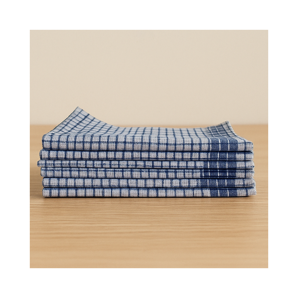 Lot de 6 Mouchoirs de Travail Carreaux Bleu et Blanc - 100% coton - Doux et écologique - 50x50cm
