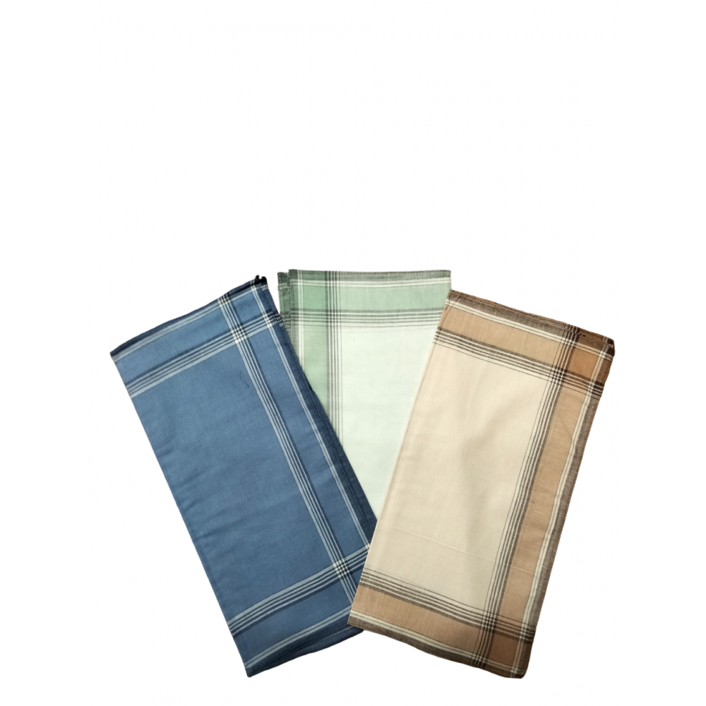 Mouchoirs de travail, 40x40cm, bleu, terracotta et vert, avec des bordures pour un effet plus chic, 100% Coton. Prix pour un lot de 6 mouchoirs.