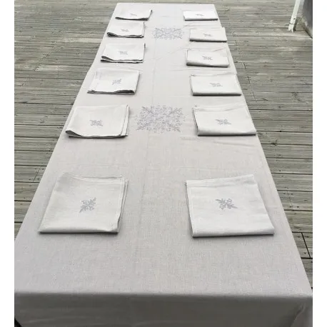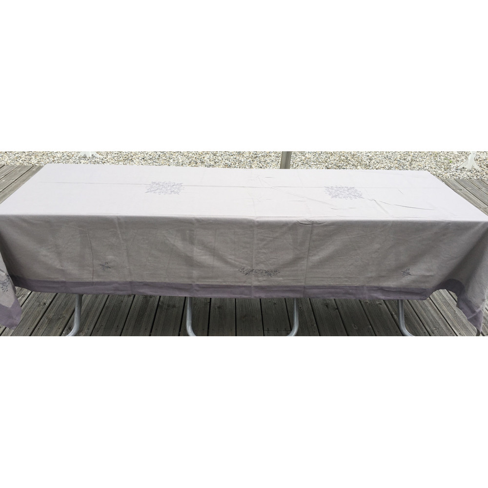Nappe rectangle de 150x300 cm de couleur grise avec motif brodés.