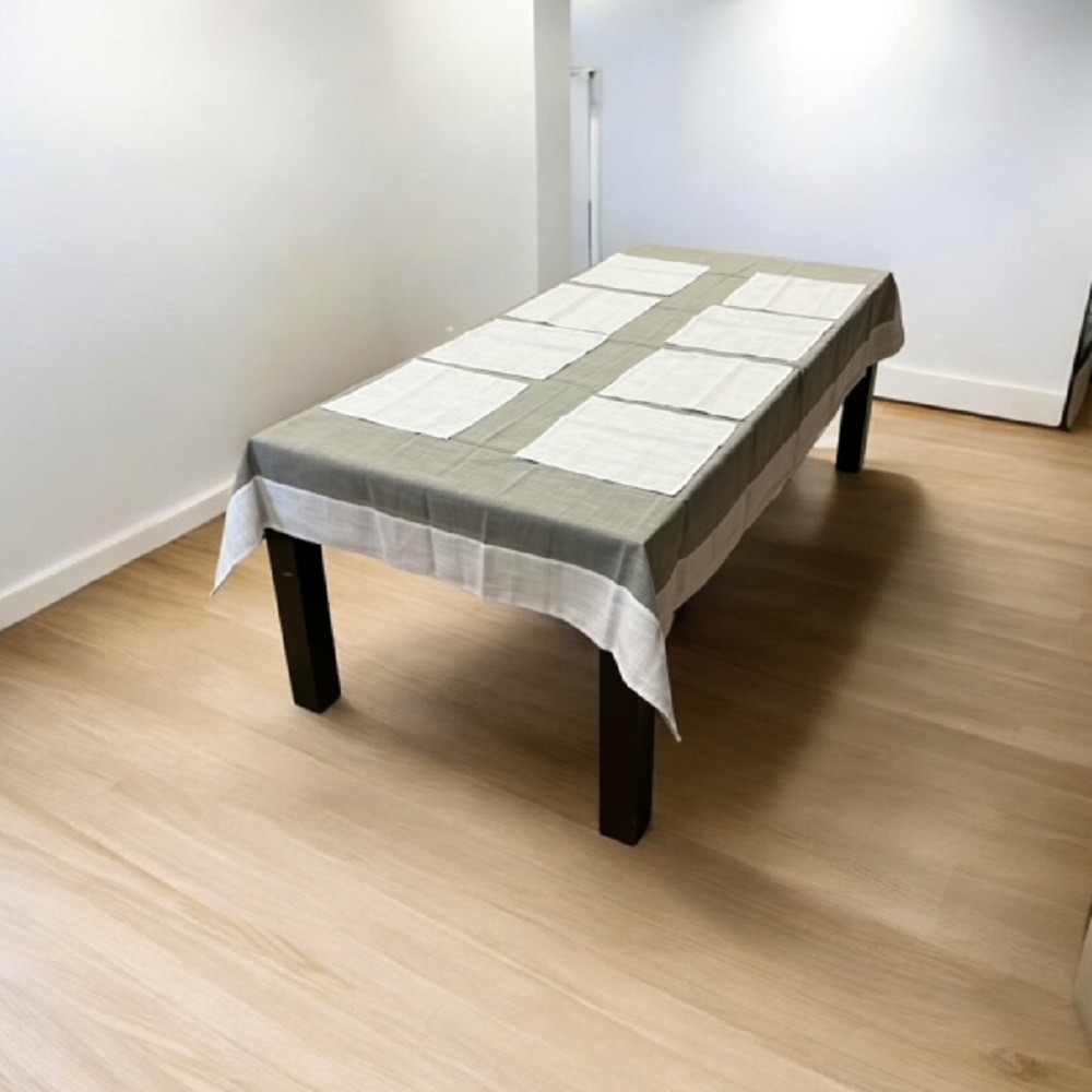 Nappe Brodée Blanc Gris 160 x 250 cm + 8 serviettes assorties
