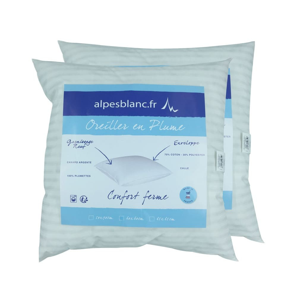 lot de deux oreillers naturels en plume de canard fabriqués en France