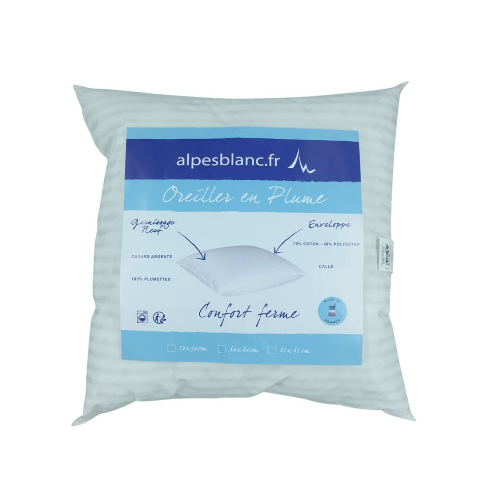 - 100 % PLUMETTES NEUVES : garnissage plumettes de canard argenté français trié et stérilisé à haute température pour un oreiller 65×65 cm moelleux, gonflant et durable.